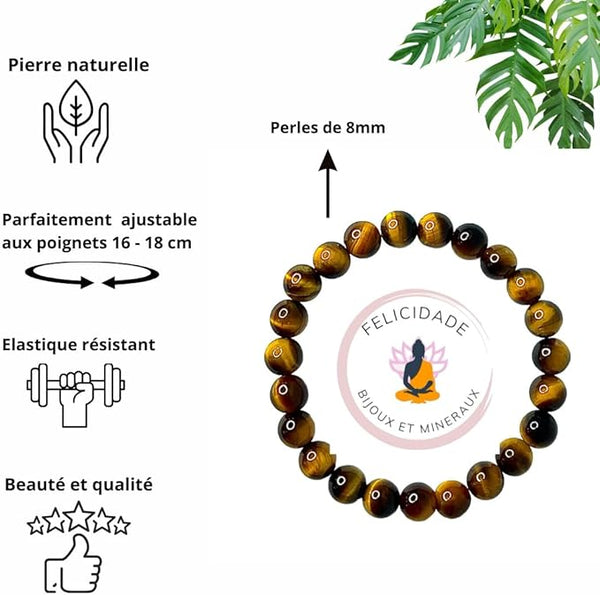 SYMBOLE DE FORCE INTÉRIEURE : Reconnu pour ses vertus de garde protectrice, l'œil de tigre est au cœur de notre bracelet, offrant plus qu'un simple accessoire esthétique. Il se porte comme un emblème de sécurité et de bravoure au quotidien. Tout en respectant une approche non curative, ce bijou évoque la force et le courage, faisant de lui le cadeau parfait pour apporter une touche de confiance et de protection à vos proches, que ce soit pour une femme ou un homme.